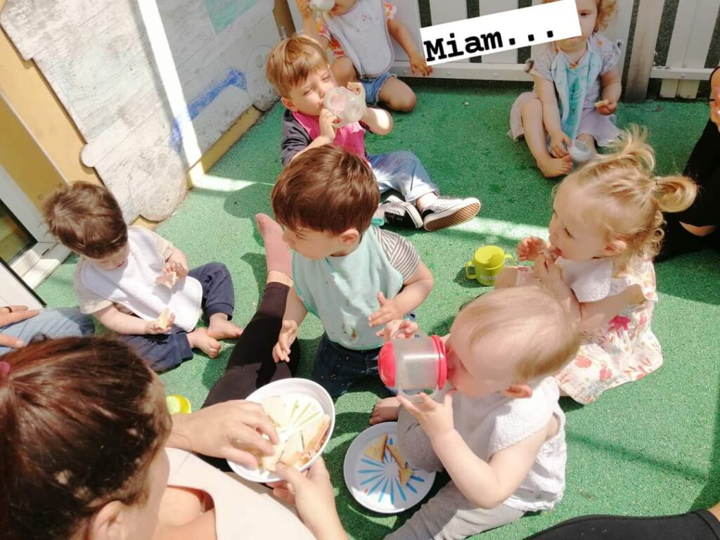 Les repas sont aussi des moments conviviaux et de partage. Lorsque les beaux jours arrivent, l’équipe propose parfois aux enfants de pique-niquer dans la cour de la crèche. Et lors des anniversaires, les plus grands auront la chance de participer à la préparation de leur gâteau. Des ateliers cuisine peuvent être proposés .